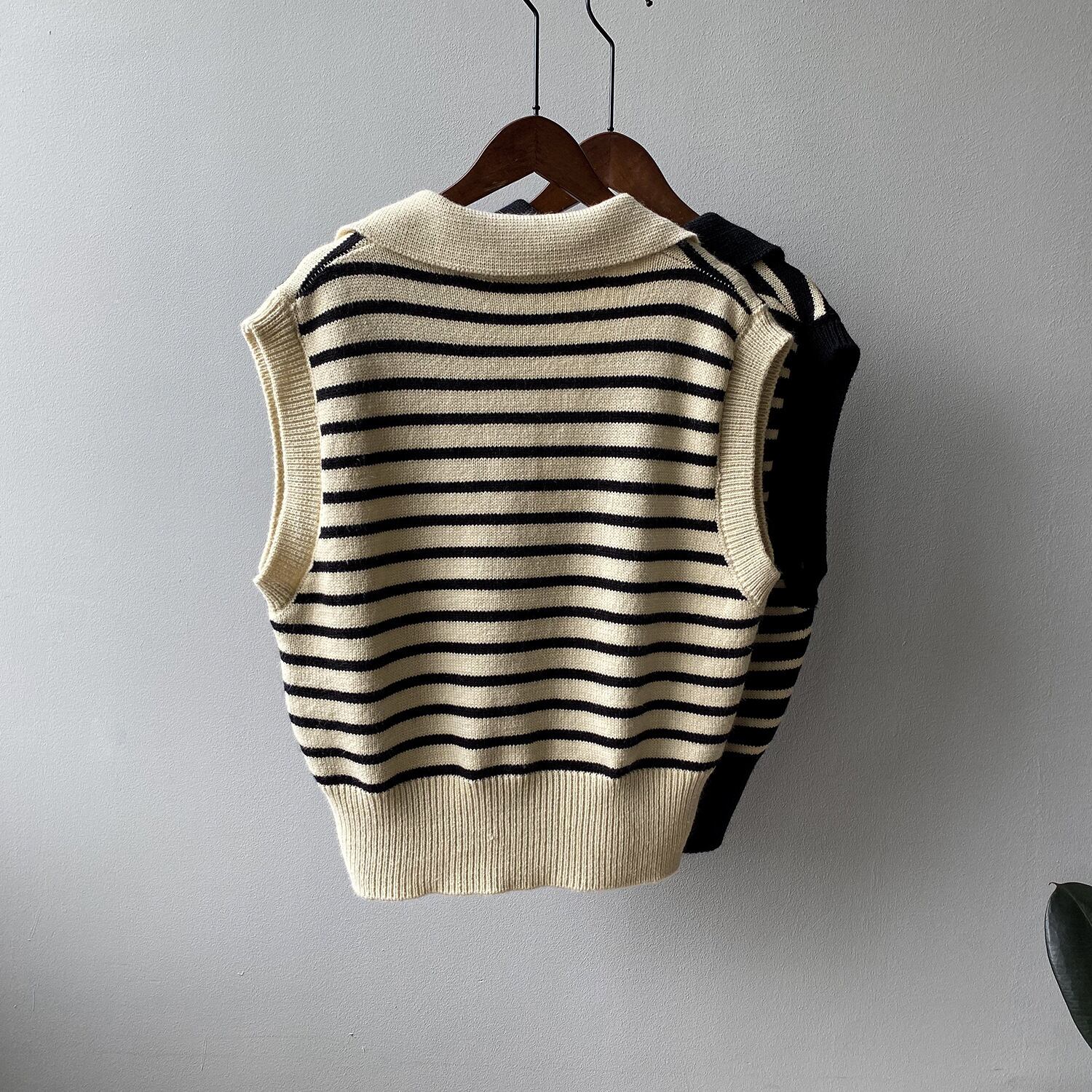 striped knit vest〚 0008〛